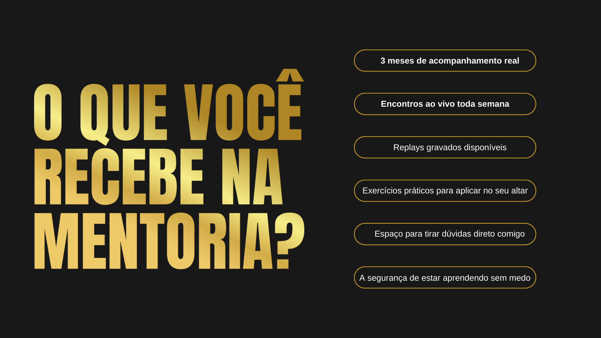 Ă uma mentoria intensiva, onde eu estarei ao seu lado para garantir